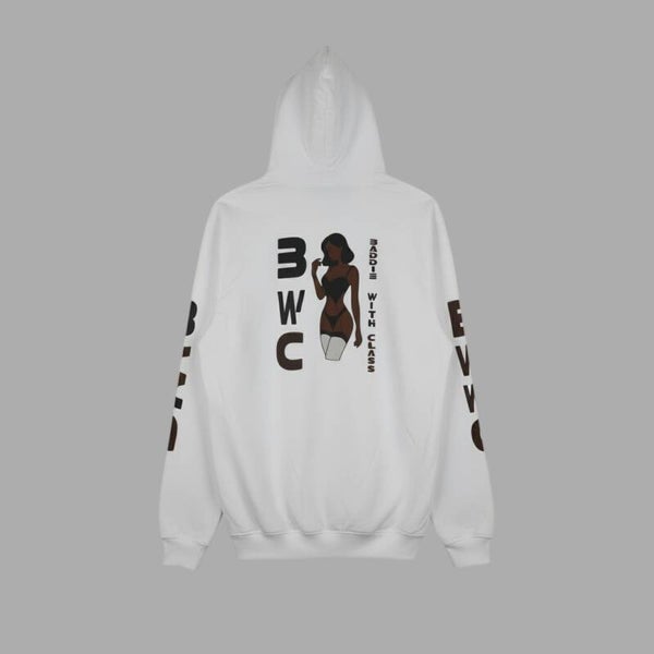 BWC Subli Hoodie Wit met Zwarte en mix kleurline lettertype 1